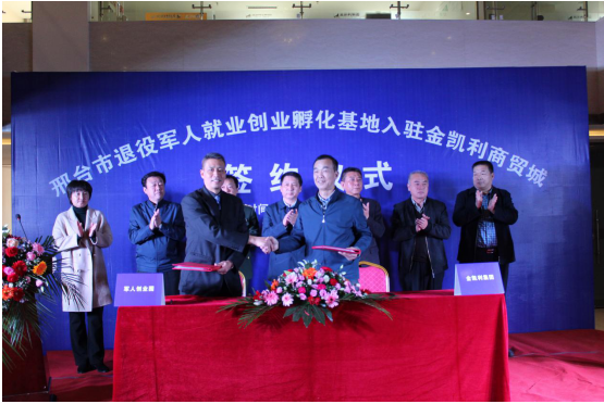 邢臺(tái)市退役軍人就業(yè)創(chuàng)業(yè)孵化基地入駐金凱利商貿(mào)城簽約儀式盛大舉行